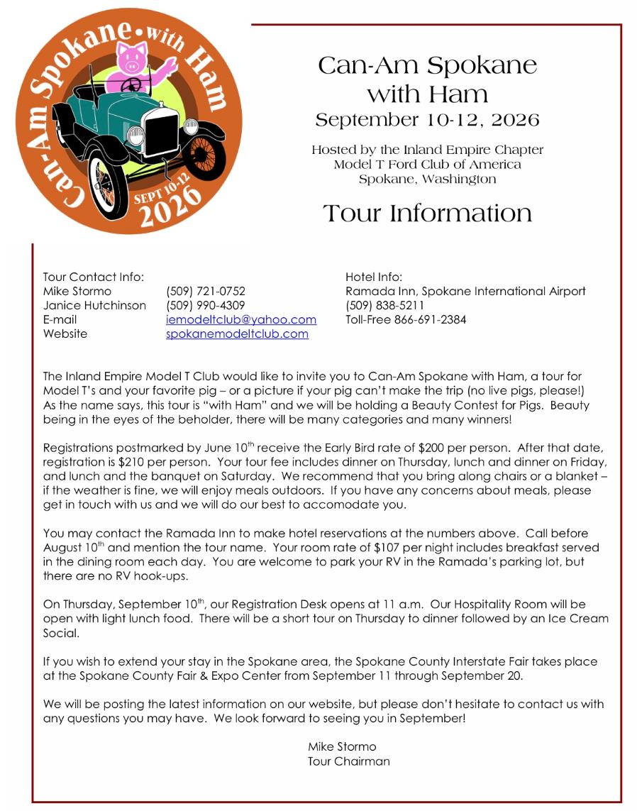 Hosted by The Spokane Model T Club